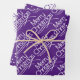 Purple and white Christmas typography and dots holiday Wrapping Paper Sheets. The first sheet features the text "Merry Christmas" in white on purple, the second white polka dots on purple and the third the text "Merry Christmas" in purple on white.