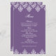 Purple White Damask Arabesque Wedding Menu Card