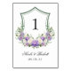 These beautiful monogrammed watercolor purple and white floral crest wedding table number cards are perfect for your wedding reception! The crest is elegant and romantic. Put them on every table at your venue so guests can find the table they have been assigned for the party. It is so easy to make these cards your own. Simply select Personalize this template and type in your information and the table number and add to cart. Repeat for how every many tables you will be having at your reception.