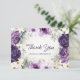 Elegant birthday party Thank You card for women with pretty white and purple hand-painted flowers and sage green leaves accented with gold glitter. Personalized with the name of the guest of honor on the front and as a signature on the back. Keep the message on the back or change it to make it more personal. Contact me for assistance with your customizations or to request additional matching Zazzle products for your party.