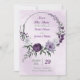 Beautiful botanica save the date card featuring purple lavender and white flowers with green leaves on a green circle forming a pretty romantic wreath.