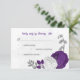 Romantic royal purple & white flowers with silver leaves botanical wedding response card.