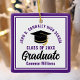This modern purple and white custom graduate Christmas ornament feature classy typography of your university or college name for the class of 2024. Customize with your graduating year next to the chic handwritten script and black grad cap for a great personalized congratulations graduation gift.