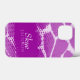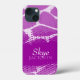 Bright animal patterned iPhone case in bold purple hues. Personalize this item with your full name. This example currently reads Skye Jackson. This original pattern by Sarah Trett is based on the patterning found on a giraffe with a halftone moire dot gain pattern overlay created for www.mylittleeden.com on Zazzle.