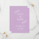 Beautiful minimalistic floral wedding save the date card in a lovely shade of pale purple with white text and hand-drawn floral twigs with leaves and little flowers.