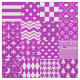 Purple and White Mixed Patterns Patchwork Design of 16 Different Design illustration of Fleur-de-lis, crowns, hearts, Polka Dots, Greek key, Moon stars, Houndstooth, Trees, Harlequin, Stripes, Check, umbrella, anchor, Chevron, blob and flower floral illustration Designs.