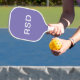 Personalized pickleball paddles make great gifts for all occasions. This design features a simple purple background with white block-style monogram text. You can customize the text with any initials or wording of your choice.