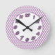 Purple & White Polka Dots Round Clock