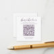 Purple and white share the love QR Code cards. Place these small cards at your wedding reception tables so guests can scan to upload the photos they took at your wedding reception to your album or social media. To generate a new QR code on the design, add the URL of your online wedding album or social media handle in the area provided, using the "personalize" feature. A brand new QR code will then be added to to the design.