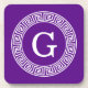 Purple and White Greek Key Round Framed Initial Monogram