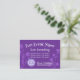 This cute, floral purple business card is a cute way to announce a fun event. Even though "Mighty, 3.5"x2.5" business card is a larger size than standard business card, this can be a fun way to create a small flyer advertisement of an upcoming event. This purple advertisement card is a versatile look for sports, church, girl's clubs, or youth organizations. Easily change the purple colors and fonts. The flowers in the background are also color changeable! Transfer the artwork to a variety of other card or paper sizes.