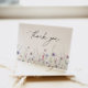 A wildflower themed thank you card, perfect for anyone who loves the beauty of nature. The soft purple tones and delicate field flowers create a romantic and whimsical feel that is sure to impress your guests.