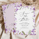 This elegant Save The Date Card from our Lavender Pressed Floral collections features purple watercolor florals with delicate greenery vines, paired with a modern script font. Perfect for any season. To make advance changes, select Personalize -> Edit using Design tool.