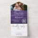 Purple Wood String Lights Mason Jars Photo Wedding All In One Invitation
