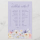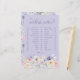 Engage your guests in playful predictions with our "Would She Rather" bridal shower game, beautifully framed by hand-painted pastel wildflowers and delicate pink and purple butterflies on a soft lavender backdrop. This charming game card not only adds fun to your event but also beautifully complements the enchanting theme, making it a perfect addition to your bridal shower activities.