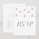 Cute and trendy Confetti Response Postcard with fun confetti dots in purple and yellow. This simple and modern RSVP card can be easily customized with your wedding information. Find more customization options by clicking Customize It.