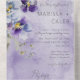 AVAILABE WITH OR WITHOUT A QR CODE OR WITH OR WITHOUT DINNER SELECTION OPTIONS. SEE OUR STORE FOR INIVTATION VARIATIONS. This simple but elegant design features a bouquet of purple, yellow, and lavender pansies and other flowers with greenery. The background is a purple watercolor splash on a textured white watercolor paper background. It's part of the Purple & Yellow Floral Modern Wedding Suite created by Simply Farmhouse Press.
