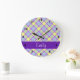 Purple & Yellow Plaid Pattern Large Clock