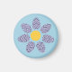 Celebrate spring and Easter with this cute floral magnet featuring a seven-petaled flower with purple Easter egg petals! The center features a fun design of white and yellow polka-dots against a dark yellow background, while the whole design is set against a pale pastel blue. Buy yours today and add some Easter fun to your refrigerator, locker, or any other magnet-friendly metal surface.
