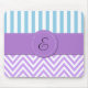 Purple Zigzag, Chevron, Blue Stripes, Monogram Mouse Pad