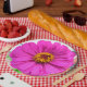 These beautiful blooming purple zinnia flowers make great party plates.