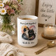 This adorable kitty cat themed coffee mug is the purr-fect gift for your favorite person or couple. Personalize it with your desired names. You can also change the phrase to suit your preference.
