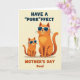 Designed with a cozy, lighthearted look, the card shows two anthropomorphic cats posed close together like trusted companions ❤️. A larger orange cat sits beside a smaller matching cat, and both wear white-framed sunglasses with dark lenses that make their little smiles feel like a shared secret. Warm tangerine and amber tones give their fur a sunny glow, with simple outlines adding a bit of depth against a soft cream background. Their bodies angle slightly toward each other, suggesting closeness and an easy, affectionate bond without needing big gestures. Across the upper area, the main message appears in large, cheerful letters reading “PURR”FECT Mother’s Day,” with “Oma!” placed beneath it as a smaller addressee line in a coordinating color. The layout keeps the cats filling the lower half while the text stays clear above, leaving plenty of open space for a calm, airy feel 🌼. The sunglasses are bright white with squared corners, and the cats’ orange coats stand out crisply against the pale backdrop.