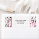 An address label featuring a design consisting of pink and black retro cat eye sunglasses, pink change purses with gray polka dots, pink clutch purses with black bow, pink lipsticks, pink gemstones, and bottle of perfume with pink atomizer.