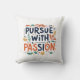 The "Pursue with Passion" throw pillow design features an inspiring message against a soft, neutral background. The elegant typography in bold letters stands out, conveying a sense of determination and drive. The text is accompanied by subtle artistic accents, such as delicate lines or abstract shapes, that add a modern and uplifting touch. This pillow serves as a daily reminder to chase dreams with enthusiasm and focus, making it a perfect decorative piece for a home office, living room, or bedroom.