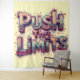 This stunning tapestry features a vibrant yellow and creamy backdrop, creating a bright and inviting atmosphere. The motivational phrase "Push The Limits" is showcased in a striking, modern typography that resembles neon, with square, glass-like letters that appear dimensional and colorful. The bold, transparent letters pop against the backdrop, creating an eye-catching contrast that draws attention and inspires action.