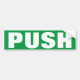 Push to open door window sign on durable vinyl sticker decal. Also available as PULL or customize it. Personalizable template text and color. Green and white. Handy public warning signage with big letters for business, company, club, shop, office building, restaurant, hotel etc. Custom danger, caution and attention notice for main entrance or exit.