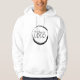 Add your own round business logo image to create a promotional hoodie. This sample features a black ink logo against white cloth.