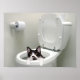 Black and white kitty cat in a bathroom toilet bowl great poster for the bathroom as a reminder to put the toilet lid or seat down....or just for cat lovers