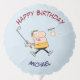 Here is a fun birthday balloon for the man who is turning the big 50! It features your custom text in blue and black stylized text. Currently it says "Still puttin' around at 50". A cartoon golfer is taking a whack at his ball beneath the text. The back of the balloon has the same image, but with your custom curved text at the top and bottom. *This design uses image © Graphics Factory.com*