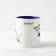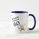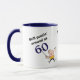 This mug makes a cute gift for anyone who is turning the big 60. It features your custom text in blue and black stylized text. Currently it says "Still puttin' around at 60". A cartoon golfer is taking a whack at his ball beneath the text. The image and text are on each side, with your name or other custom text in the middle. Funny!