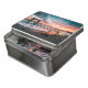 Puzzle 60 pieces (20.3 cm x 25.4 cm) Puzzle dimensions: 20.3 cm x 25.4 cm (60 pieces). Box dimensions: 14 cm x 10.2 cm. Acrylic, high quality, water resistant and very durable. It includes a matching metal box. A gift of the most modern and tasteful!