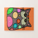 Comical Cat puzzle with large pieces on an orange background. Thanks to the Hungryjpeg and Creative Fabrica for some of the elements in the design. If you want to add a name there is room for it.