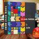 A modern binder featuring colorful puzzle pieces on a chalkboard background with your custom texts. Great for school.