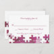 A coordinating response card featuring shades of pink puzzle pieces. <a href='http://www.freepik.com/free-vector/puzzle-background-free-for-download_714024.htm'>Designed by Freepik</a>. <br/><br/>The card is easy to customize with your wording, font, font color and choice of six paper types.<br/><br/>Not exactly what you're looking for? All our products can be custom designed to meet your needs at no extra charge.<br/><br/>Simply contact us at heartfelthelper@gmail.com<br/><br/>Coordinating products available: Puzzle Pieces Invitation