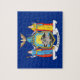 Crafted with attention to detail, this puzzle is more than just entertainment; it's a celebration of New Yorker heritage and cultural identity. The design proudly showcases the iconic blue background with the state's coat of arms centered, featuring symbols like Liberty and Justice, symbolizing the state's history and ideals.