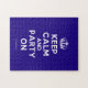 Based on the original Keep Calm and ... poster this cream and blue Keep Calm and Party On Puzzle features a custom designed font that matches the original closely.