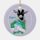 Pygora Goat- Holiday Goat Ornaments with a Tropical Flair. Lavender background with pastel gift packages and holiday branches with a pretty lavender ornament. Each design features a goat breed and on the back a tropical Holiday Wreath.