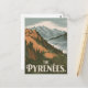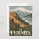A breathtaking and nostalgic depiction of the Pyrenees, a majestic mountain range that forms the natural border between France and Spain. The design captures the stunning alpine landscapes, with towering peaks, lush valleys, and tranquil lakes. Rendered in a vintage style, the artwork evokes the serene beauty and adventurous spirit of the Pyrenees, inviting viewers to explore its breathtaking scenery and outdoor activities.