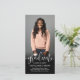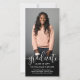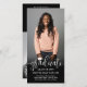 Share the joy of a high school or college graduation with elegant combination announcement and invitation cards featuring two photos and a custom QR code. With this downloadable card you can announce the graduate's achievement and provide any additional photos and details through an online location of your choice such as a website, social media page, digital announcement, party invitation, or photo album. Depending on how it's set up, the link could provide a place for friends and family to post an online note, give a payment app gift, or view more information, such as party details and rsvp. The modern black and white design features a mortar board cap, trendy script calligraphy, elegant classic typography, and two photos of your choice, such as senior pictures or images from the commencement ceremony. The pictures and wording on this template are simple to personalize and the colors are easy to change using the Zazzle design tool. This chic downloadable vertical graduation card is a stylish way to announce a special day celebration. Congratulations to the graduate!