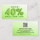 QR CODE 40%OFF DISCOUNT PROMOTIONAL GREEN BUSINESS CARD