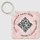 QR code and custom text double sided pink marble Keychain
