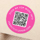 QR code and custom text round hot pink Classic Round Sticker
