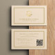 Lawyer legal conselor attorney at law firm elegant gold and beige business card with scales of justice logo, QR code, and simple modern minimalist typography. Suitable for a law firm, professional legal practitioner, judge, solicitor, or consultant.