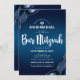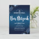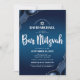 QR Code Bar Mitzvah Navy Blue Ombre Agate Script Invitation