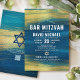 QR Code Bar Mitzvah Turquoise Gold Foil Modern Invitation